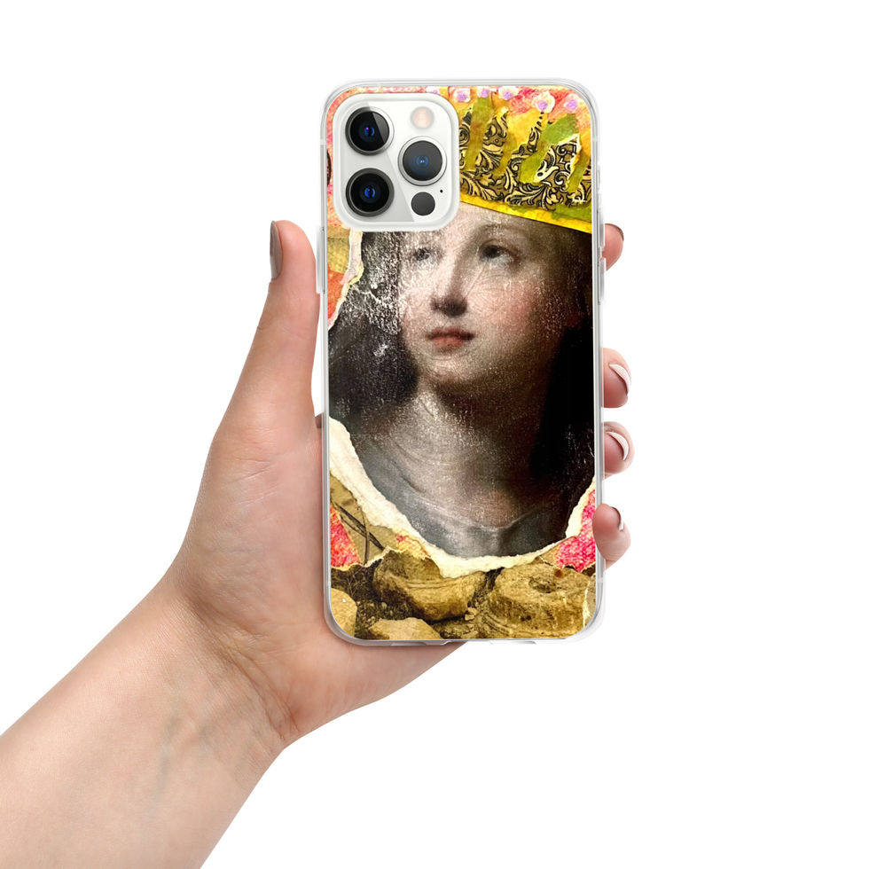 It features a vintage portrait emerging through layers of rich texture, as if breaking through time itself. The torn-paper effect, combined with vibrant floral hues, golden undertones, and expressive pastel strokes, evokes both revelation and erosion suggesting themes of renewal and impermanence. The crowned figures symbolize power and reinvention, while the gestural handwriting adds a personal, almost whispered narrative to the piece.