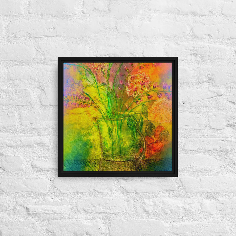 Introducing a new line of vibrant floral prints on canvas—available in 16x16 or 12x12. Bold color, textured beauty, and timeless elegance, ready to brighten any space. Spice up your blank walls with this head-turning framed canvas! This high-quality pine tree framed canvas comes with rubber pads on the back corners and wall mount that makes hanging the artwork hassle-free. What’s more, the frame gives the canvas a cool floating effect!